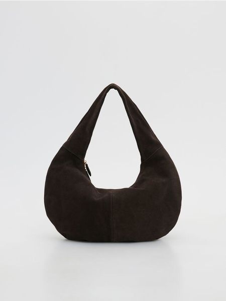 Torebka typu hobo, wykonana ze skóry naturalnej.
