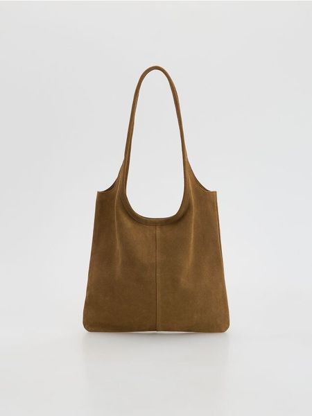 Torebka o prostym kształcie, wykonana ze skóry naturalnej.