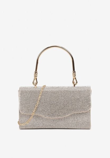 Srebrno-Złota Torebka na Ramię z Metalową Rączką Zapinana na Magnes Ozdobiona Cyrkoniami Lulagia