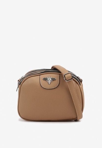 Ciemnobeżowa Trzykomorowa Torebka z Metaliczną Ozdobą Nanilara