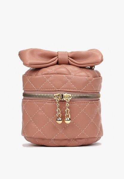 Różowa Kwadratowa Pikowana Torebka z Ozdobną Kokardą i Suwakami Vianefa