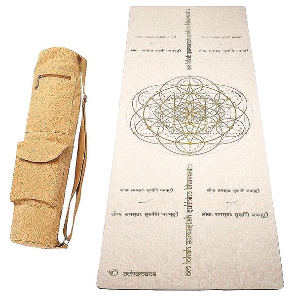 Mata do jogi z gumy i konopi 4,5mm + torba ze skóry korkowej – kwiat życia