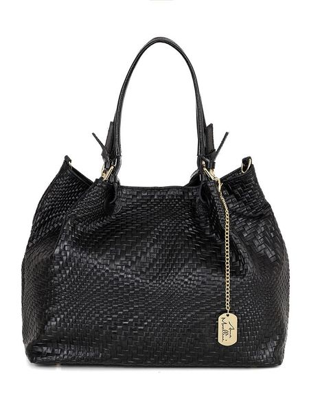 – materiał: skóra- powierzchnia: pleciona- uchwyty: 2- długi pasek przez ramię: regulowany, odpinany- zapięcie: suwak- kieszenie wewnętrzne: 1 kieszeń na zamek, 1 kieszeń otwarta- wewnętrzne detale: komora główna dzielona zasuwaną kieszenią- detale: zawieszka, metalowe nóżki- tekstylna podszewka: tak