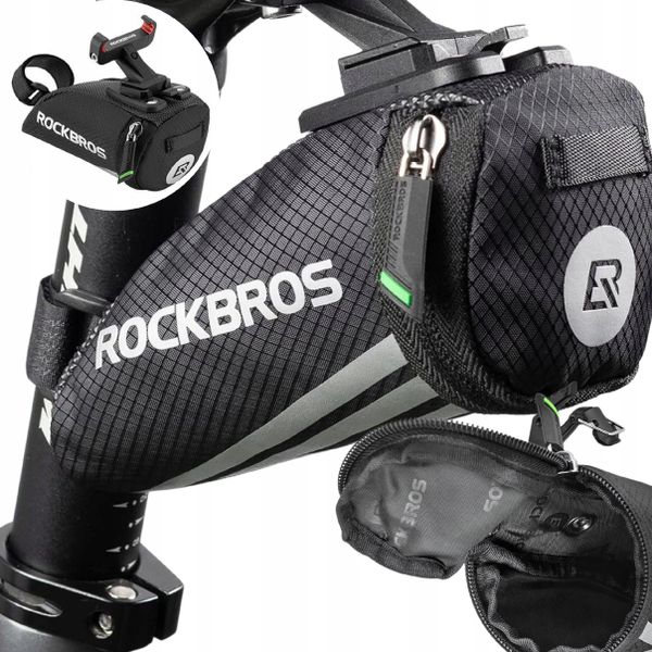 Torba podsiodłowa Rockbros 1 L odblask uniwersalna montaż na rzep czarna