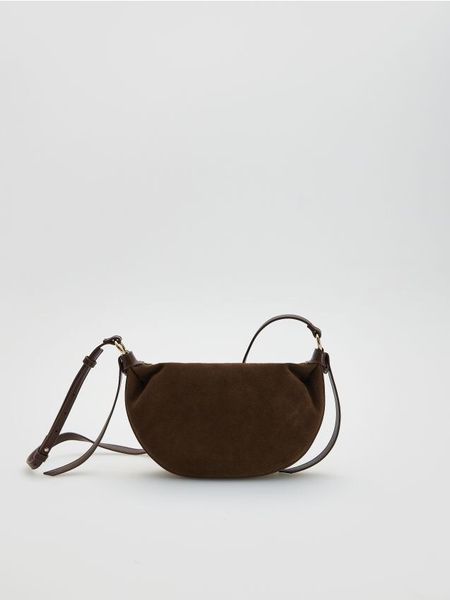 Torebka o prostej formie, wykonana z naturalnego zamszu.