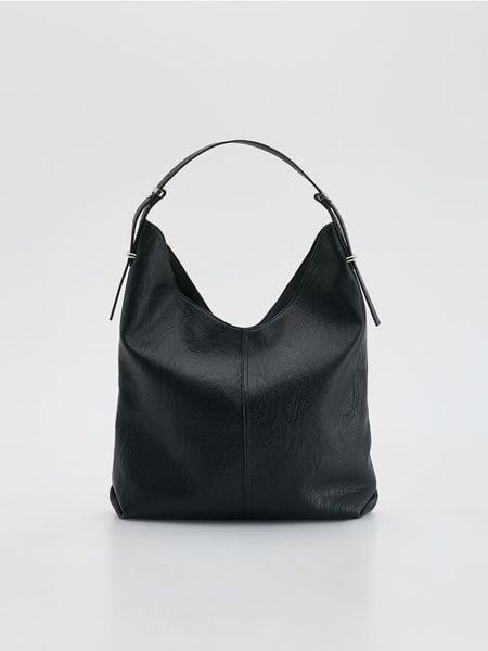 Torebka o formie hobo, wykonana z imitacji skóry.