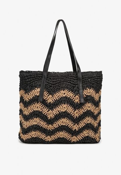 Czarno-Beżowa Torebka z Plecionki z Dodatkową Kieszonką z Ekoskóry Cosina