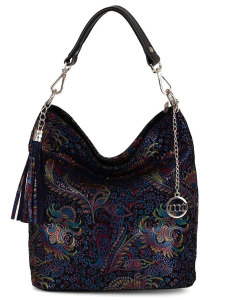 – materiał: skóra- powierzchnia: wzorzysta- krótki pasek na ramię: odpinany- długi pasek przez ramię: regulowany, odpinany- zapięcie: suwak- kieszenie wewnętrzne: 1 kieszeń na zamek- detale: zawieszka, chwost- tekstylna podszewka: tak- wyprodukowano we Włoszech