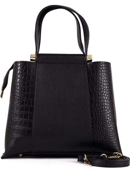 – materiał: skóra bydlęca- powierzchnia: o fakturze krokodylej skóry- uchwyty: 2- długi pasek przez ramię: odpinany- zapięcie: suwak- kieszenie wewnętrzne: 1 kieszeń na zamek- wewnętrzne detale: komora główna dzielona zasuwaną kieszenią – wyprodukowano we Włoszech