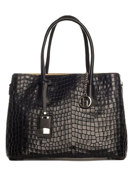 – materiał: skóra- powierzchnia: o fakturze krokodylej skóry- krótki pasek na ramię: 2- długi pasek przez ramię: regulowany, odpinany- zapięcie: suwak- kieszenie wewnętrzne: 1 kieszeń na zamek- wewnętrzne detale: komora główna dzielona zasuwaną kieszenią- detale: zawieszka- tekstylna podszewka: tak- wyprodukowano we Włoszech