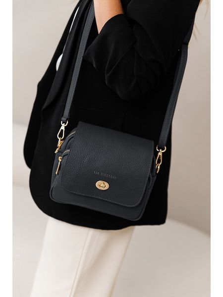 – materiał: skóra- długi pasek przez ramię: regulowany, odpinany- zapięcie: wtyk, suwak- kieszenie zewnętrzne: tak, na zamek- tekstylna podszewka: tak- wyprodukowano we Włoszech