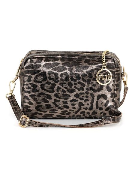 – materiał: skóra bydlęca- powierzchnia: wzorzysta, z metalicznym połyskiem- długi pasek przez ramię: odpinany- zapięcie: suwak- kieszenie wewnętrzne: 1 kieszeń otwarta- wewnętrzne detale: dzielona komora główna- detale: zawieszka