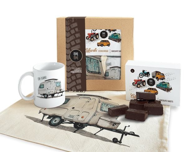 Paczka prezentowa z przyczepą Niewiadów N-126 cukierki czekoladowe 125 gkubek ceramicznytorba bawełniana Paczkę można dodatkowo powiększyć o koszulkę lub bluzę (Kliknij aby zobaczyć wymiary i specyfikacje)Przyczepa Niewiadów N-126Autorem rysunku jest Mariusz Felek Foltak.