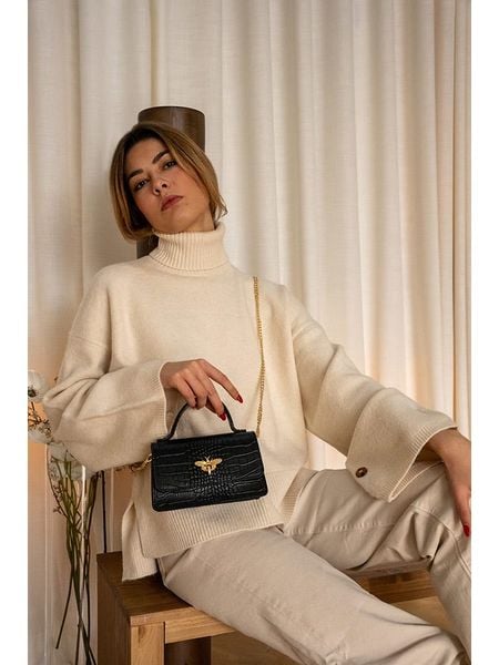 – materiał: skóra- powierzchnia: o fakturze krokodylej skóry- uchwyty: 1- długi pasek: łańcuszek, odpinany- zapięcie: magnetyczne- tekstylna podszewka: tak- wyprodukowano we Włoszech