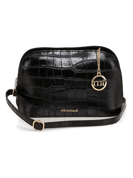 – materiał: skóra bydlęca- powierzchnia: o fakturze krokodylej skóry- długi pasek przez ramię: regulowany, odpinany- zapięcie: suwak- kieszenie zewnętrzne: tak, na zamek- kieszenie wewnętrzne: 1 kieszeń na zamek- detale: zawieszka- tekstylna podszewka: tak- wyprodukowano we Włoszech