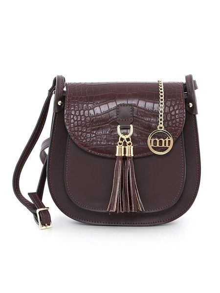 – materiał: skóra bydlęca- powierzchnia: o fakturze krokodylej skóry – długi pasek przez ramię: regulowany- zapięcie: magnetyczne i suwak- kieszenie zewnętrzne: otwarte – kieszenie wewnętrzne: 1 kieszeń na zamek – detale: zawieszka i frędzle