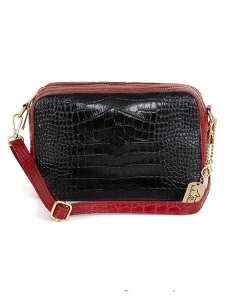 – materiał: skóra bydlęca- powierzchnia: o fakturze krokodylej skóry- długi pasek przez ramię: regulowany, odpinany- zapięcie: suwak- kieszenie zewnętrzne: tak, na zamek- kieszenie wewnętrzne: 1 kieszeń na zamek- wewnętrzne detale: dzielona komora główna- tekstylna podszewka: tak- wyprodukowano we Włoszech