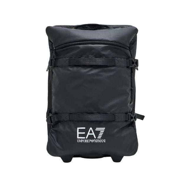 Walizka kabinowa wykonana z tkaniny technicznej, z bocznymi paskami i pełnym zamkiem błyskawicznym. Model posiada dwa pojemne przedziały wewnętrzne i jest ozdobiony kontrastowym logo EA7. Idealny Ocena: Tags: Akcesoria Torby, plecaki Walizki podróżne Kolor: Czarny Rozmiar: Przeznaczenie: unisex Marka: EA7