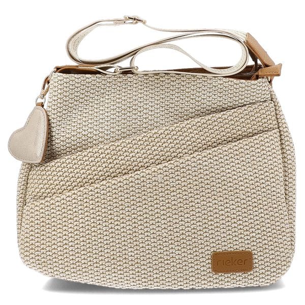 Torebka damska Rieker, z tekstylnego materiału o wyraźnej plecionej strukturze z regulowanym paskiem na ramię ozdobną zawieszką praktyczną kieszenią