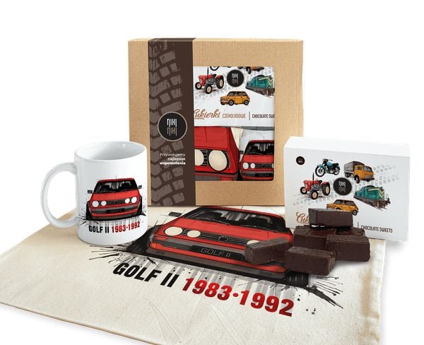 Paczka prezentowa dla fana motoryzacji Golf II cukierki czekoladowe 125 gkubek ceramicznytorba bawełniana Paczkę można dodatkowo powiększyć o koszulkę lub bluzę (Kliknij aby zobaczyć wymiary i specyfikacje)Volkswagen Golf Mk IIVolkswagen Golf drugiej generacji po raz pierwszy pojawił się w 1983, by wkrótce zająć trzecie miejsce w plebiscycie na Europejski Samochód Roku 1984. Pomimo wnętrza, które w najlepszym […]