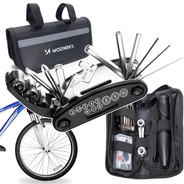 Zestaw narzędzi rowerowych wozinsky – multitool 16w1, pompka, torba