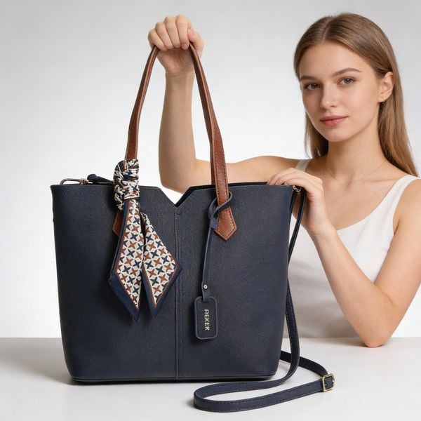 Torebka damska Rieker, ze skóry ekologicznej o klasycznej formie z dwoma uchwytami długim paskiem na ramię ozdobną apaszką i funkcjonalnym wnętrzem d