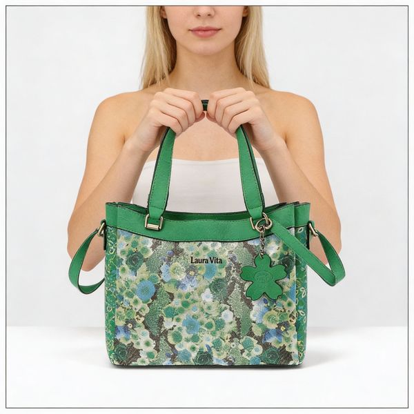 Torebka damska Laura Vita, z materiału syntetycznego z ozdobnym wzorem kwiatowym krótkie uchwyty do noszenia w dłoni regulowany pasek na ramię dekora