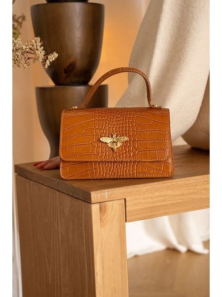 – materiał: skóra- powierzchnia: o fakturze krokodylej skóry- uchwyty: 1- długi pasek: łańcuszek, odpinany- zapięcie: magnetyczne- tekstylna podszewka: tak- wyprodukowano we Włoszech