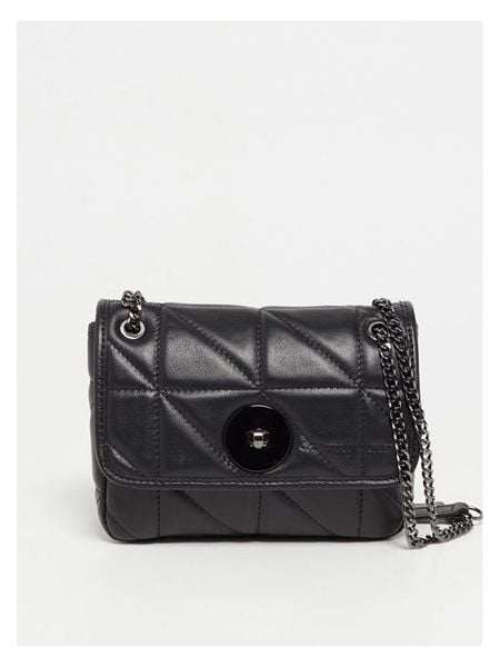 – materiał: skóra- długi pasek przez ramię: łańcuszek- zapięcie: przekręcane- kieszenie wewnętrzne: 1 kieszeń na zamek- wyprodukowano we Włoszech