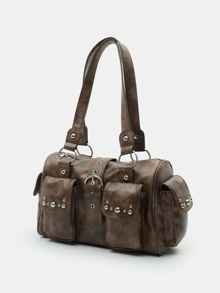 Sinsay – Mała torebka typu bowling z kieszeniami cargo – brązowy –