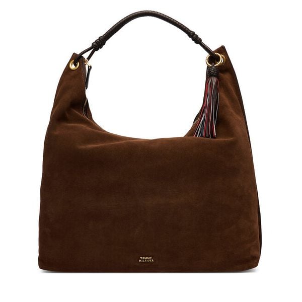 Torebka Tommy Hilfiger Th Statement Leather Hobo Suede AW0AW18403 Brązowy