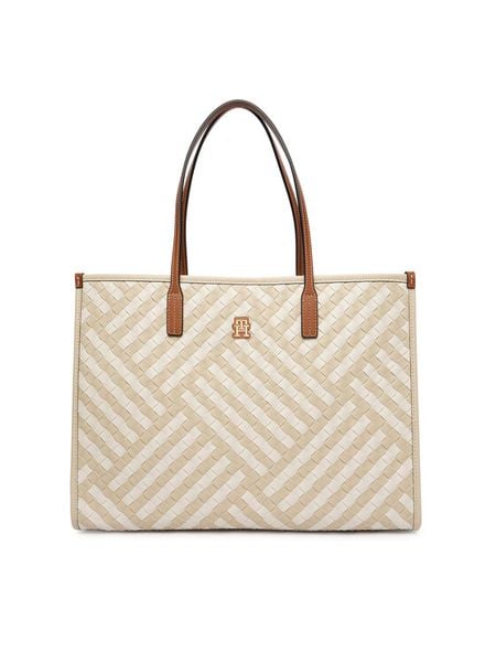 Tommy Hilfiger Torebka Th Elev Summ Maxi Tote Canvas AW0AW18629 Beżowy