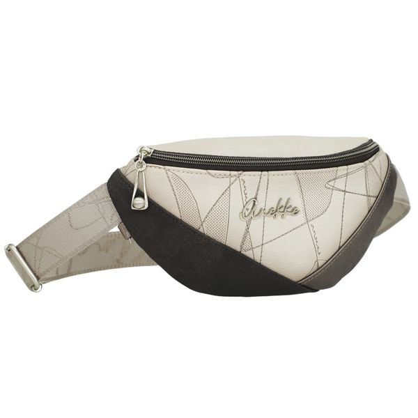 Torebka nerka damska Anekke, nerka z zamkiem błyskawicznym i regulowanym paskiem ozdobiona subtelnym nadrukiem oraz metalowym logo, beżowa, 42815-745
