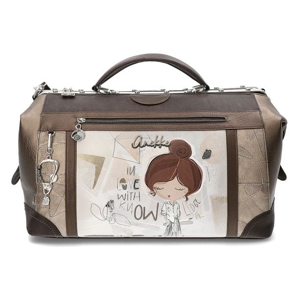 Torba podróżna damska Anekke, z ozdobnym nadrukiem i metalowym logo zapinana na suwak wyposażona w wygodną rączkę oraz regulowany pasek pojemna i fun