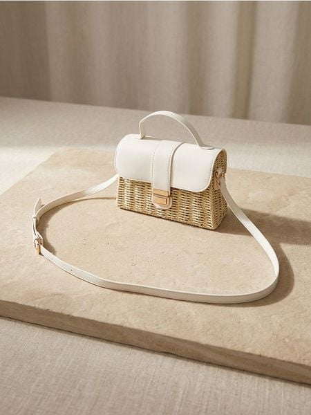Sinsay – Pleciona torebka na ramię z klapką – biały –