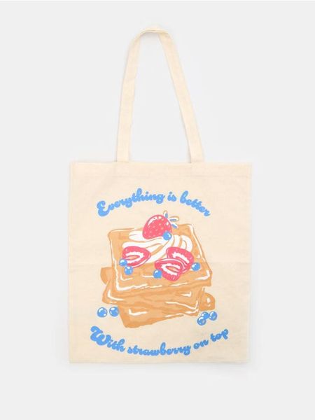 Sinsay – Materiałowa torba z nadrukiem – kremowy –