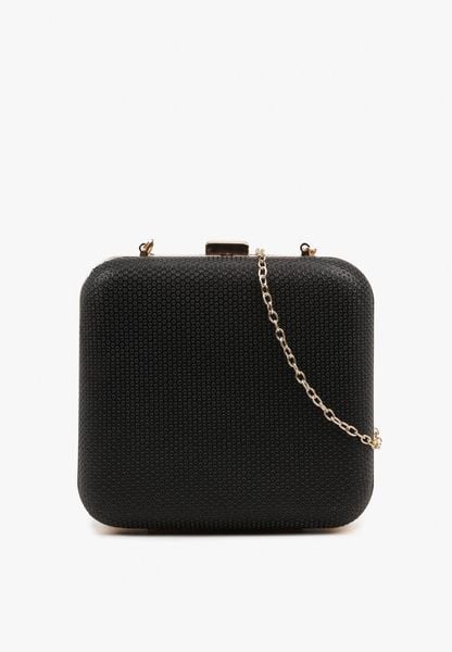 Czarna Kwadratowa Torebka Kopertówka z Łańcuszkiem Zdobiona Cyrkoniami Realina