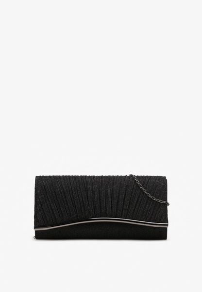 Czarna Torebka Kopertówka z Łańcuszkiem i Aplikacją w Kształcie Klamry Ahenli