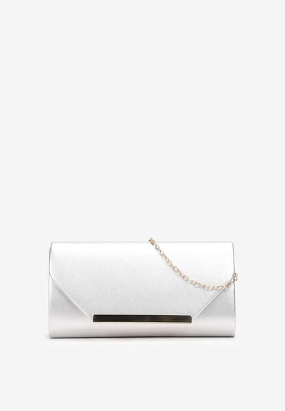 Srebrna Metaliczna Torebka Kopertówka z Łańcuszkiem i Asymetryczną Klapą Floreve