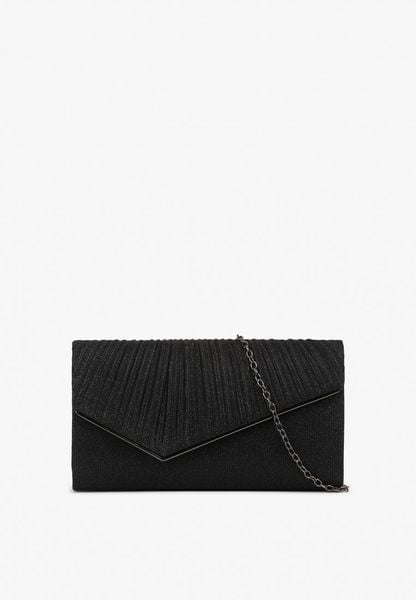 Czarna Brokatowa Torebka Kopertówka z Dodatkowym Łańcuszkiem Emilorael