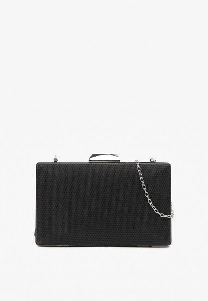 Czarna Brokatowa Torebka Kopertówka z Ozdobnym Łańcuszkiem i Uchwytem Droma