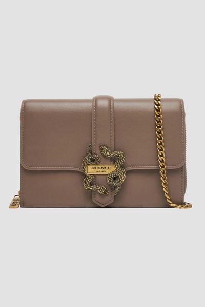 Torebka Iconic Snakes – Style 13 w kolorze taupe marki Just Cavalli łączy elegancję z funkcjonalnością. Wykonana ze skóry ekologicznej, posiada trzy praktyczne komory, zamykanie na magnes oraz nieregulowany pasek. Dołączony worek przeciwkurzowy zapewnia dodatkową ochronę podczas przechowywania.