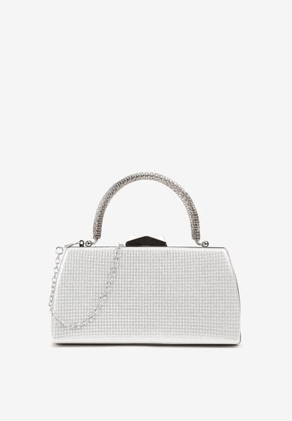 Srebrna Cyrkoniowa Torebka Kopertówka Zapinana na Magnes z Rączką i Łańcuszkiem Alatia