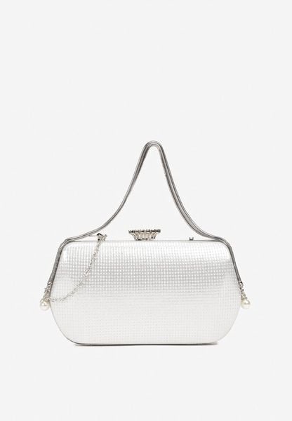 Srebrna Torebka Wieczorowa Vices z Łańcuszkiem i Rączką Zdobiona Cyrkoniami Amonne