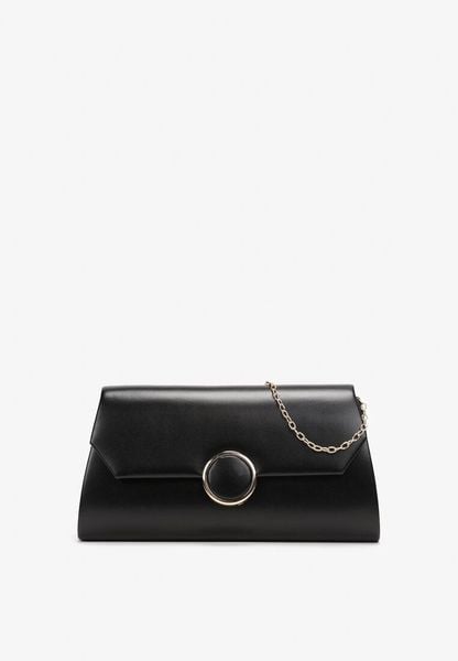 Czarna Torebka Kopertówka z Ozdobną Klapą i Łańcuszkiem Zalima