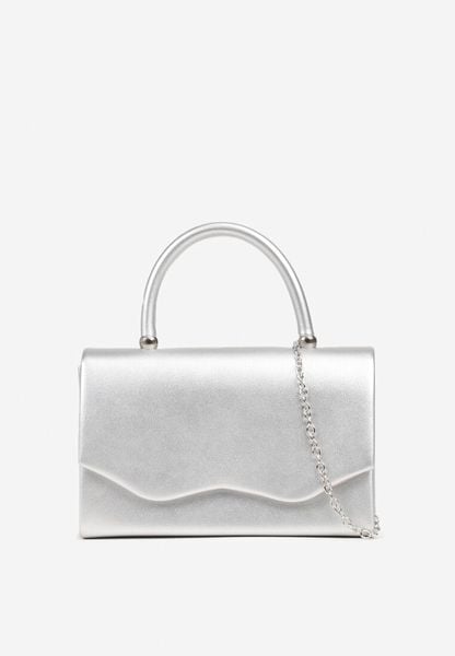 Srebrna Prostokątna Torebka Kopertówka z Rączką i Klapą Zariene