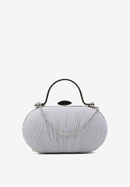Srebrna Trapezowa Torebka Kopertówka z Połyskującego Materiału z Odpinanym Łańcuszkiem Geriora