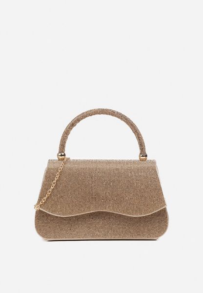 Złota Wieczorowa Torebka Zdobiona Cyrkoniami z Rączką i Łańcuszkiem Galorea