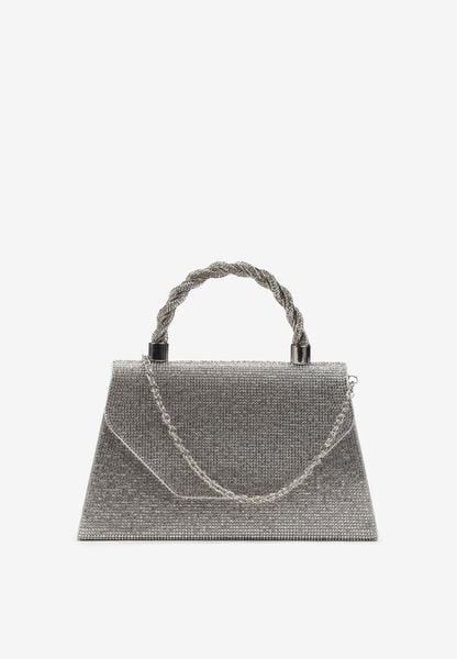 Srebrna Torebka Kopertówka Ozdobiona Cyrkoniami Odpinanym Łańcuszkiem i Rączką Lilida