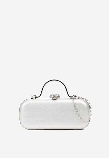 Srebrna Torebka Kopertówka z Metalowymi Rączkami i Łańcuszkiem na Zatrzask z Cyrkoniami Neliaira